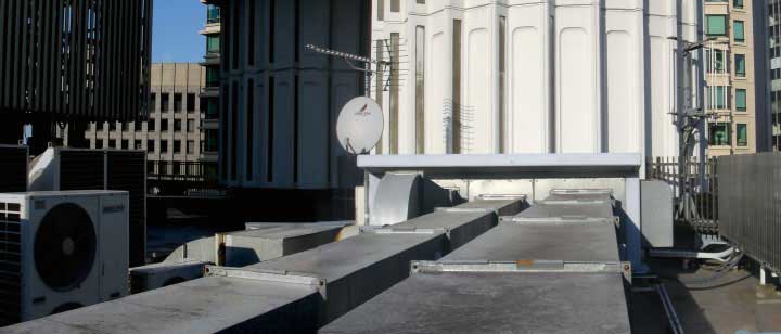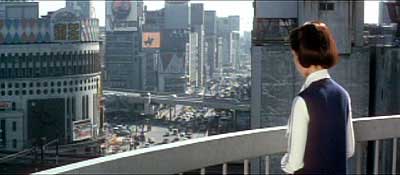 左の画像は節子が日劇方面を眺めている場面。当時の有楽町、銀座方面を一望する美しい場面だ。 しかし現在の東宝ツインタワービル屋上のこの方角は特に配管が密集していて、残念ながら入り込むことは無理だった。 |