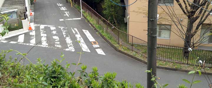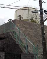 ※注2 ではこの給水塔、作品製作当時にも存在したのだろうか。 Sさんがお答えくださった。 「百合ヶ丘配水塔ができたのは、1970年前後です。映画撮影当時には水道局の建物(用途不明だが小型の配水池(=地下式のコンクリート水槽)ではないかと推定)がありました。その建物の一部の円筒形の建物はまだ残っており、その南隣に配水塔が建設されています」 とのこと。 撮影当時に給水塔は無かったのだ。もし当時にも給水塔があったのなら、格好の被写体になるので構図に入れていたような気もする。 ↓ MasterJOKERさんが給水塔付近の現状を報告してくださった。給水塔が立つ高台のふもとの道路上からの撮影だ。 |