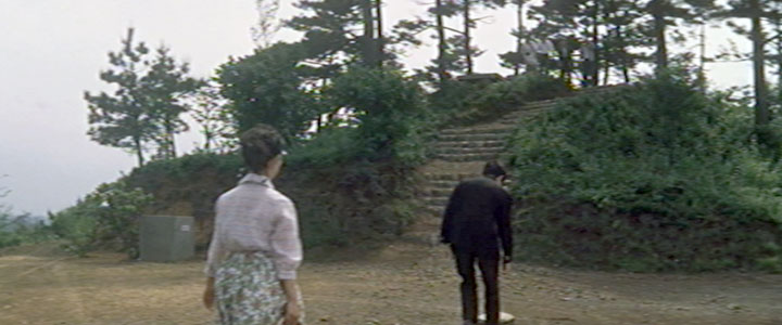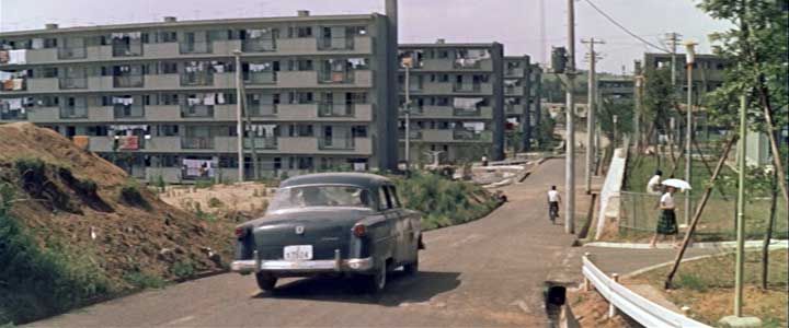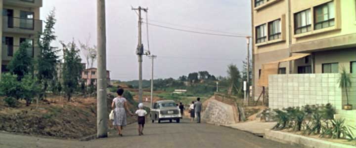 開始より1:27(神奈川県川崎市麻生区百合丘・百合ヶ丘第一団地(現サンラフレ百合ヶ丘)付近) 君江の具合が悪いのはどうやら懐妊したためのようだ。副院長になった玉代が車で往診に出かけるラストシーン。 |
