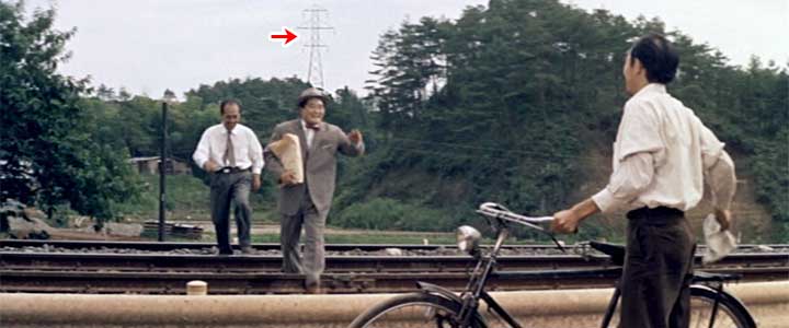 ![]() ![]() (撮影・2012・07・01) Sさんのメールより。 「百合ヶ丘駅の開業は1960年3月25日です。第一団地の入居開始も1960年(月日未確認)です。 映画を見ると、弘法松公園から見た第一団地には既に住人がおり、多くのベランダに洗濯物が干されています。この洗濯物は演出ではないでしょう。 同じ公園から見た第二団地も建設が進んでいます。第二団地の入居開始は1961年(月日未確認)です。 映画の公開は1961年8月13日ということですが、一郎と桃子が高台で弁当を食べるシーンとかオープニングのタイトルバックとか、第二団地のスターハウスに洗濯物が見え、第二団地入居後の画像もあることが見えます。 これらの状況と登場人物の服装も考え合わせると、現地での映画の撮影は1960年の春〜1961年の初夏くらいの間になると思います。 そうすると、撮影時には既に百合ヶ丘駅が存在することになります。 そこで、近場で何もないところを探して「駅予定地」にしたのではないでしょうか。 そもそも切り通しにある百合ヶ丘駅と、映画の「駅予定地」では地形が違いすぎます。 なるほど、そういうことか。 新駅とは「西生田駅」の西隣に出来る「百合ヶ丘駅」のこと。しかし撮影時にはすでに「百合ヶ丘駅」は存在した。しかし映画の中ではまだ何もない「百合ヶ丘駅建設予定地」を撮影しなければならない。それには「これといった特徴が見当らない線路が通っている場所」を選ばなければならなかったのだ。 ではこの「これといった特徴が見当らない場所」というのはどこなのだろう。 Sさんはここで、おもしろいアプローチでロケ地特定にせまってくれた。 線路、道路、そしてもうひとつ「高圧線の鉄塔と送電線」だ。 |