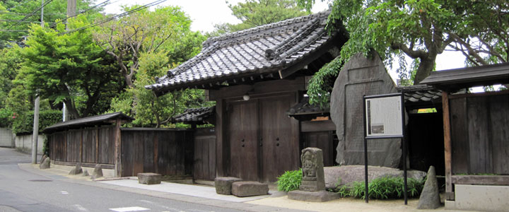 「久本薬医門公園」は江戸時代後期から地元で代々診療所を開いていた旧・岡家跡地が整備され、2007年に公園としてオープン。 この門の高さを高くとっているのは、往診の際、馬に乗ったまま門を通れるようにしたためだという。 |