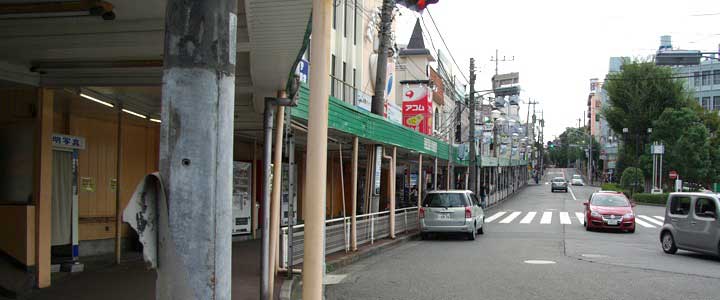![]() ![]() (撮影・2010・10・03) 駅前商店街の柳の並木はアーケードに置きかわっている。 たまたまこの写真のアングルで見ると、当時と現在との違いはそれほどでもなく感じるのだが、「駅前団地」に写し出される広々とした駅前の様子はすさまじく変わっている。 |