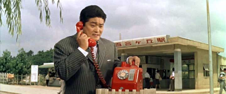 ![]() ![]() (撮影・2009・09・06) 余談だが、このカットのように撮影隊が用意した公衆電話を街角に置き、都合のいい風景をバックに撮影するというやり方はいつから始まったのだろう。このやり方は東宝の娯楽映画にはすごくよく登場する気がする。特にこの場合などダイヤルがこっち側を向いてしまっていて、こういう状況は実際にはあまりないのではないか。しかし私は好きだ。(笑) |