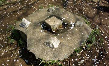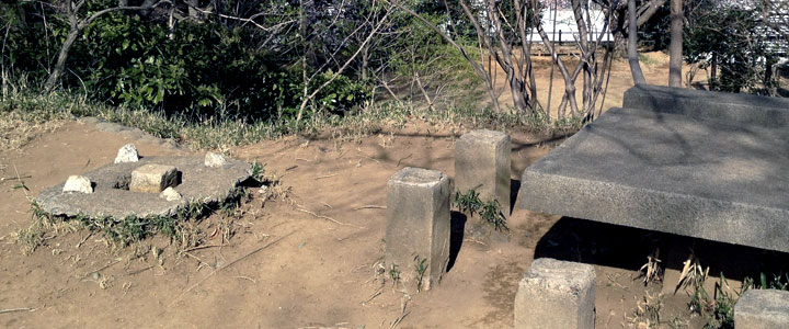 「一郎が昼寝していた石のテーブルと椅子ですが、現在は椅子部分が壊れてありませんでしたよね。実は、彼が冷やかされて丘を駆け下りる階段に、この石の椅子が使われておりました! この画像を見ていただくとわかると思います。2つの石が裏返されて、階段の一部に使われております。きっと壊れて落ちてしまった椅子を誰かが階段に流用したのでしょう。椅子は3つがなくなっていたので、あと1個もどっかにあるのかも。 これ、直して欲しいなあ。。重くて自分では持ちあげられなかったです(笑 」 (MasterJOKERさんからの報告より) |
