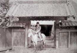 ![]() ![]() (撮影・2010・10・03) 郊外の見晴らしの良い風景は一変してしまっているが、それでも道路向こう側に石垣と、石垣の上にある屋敷に通じる坂が残っていた。(矢印) その坂を登った所には現在も茅葺き屋根の農家が保存されている。 |