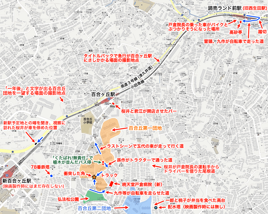 | 東京駅〜百合丘団地 タイトルバックの7地点 |