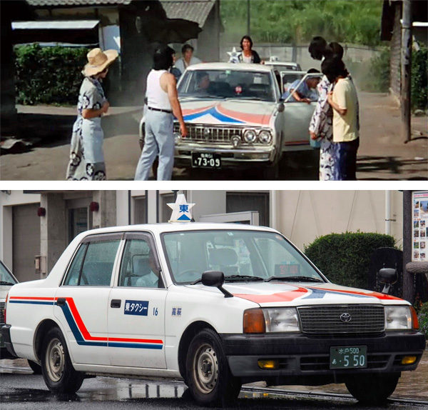 なるほど、中古バスを塗装しなおして西鉄バスに見せ、さりげなく福岡県に「見せよう」としているのかもしれない。ということは、ここは福岡県ではないということだ。(考え方がひねくれている?) ちなみに方向幕に書かれている「河崎経由 前藤寺」は原作(と言っても実話が元だが)にある「川崎町」と、筑豊田川地区(田川市・田川郡)の中心地にしてバスターミナルがあった「後藤寺」のもじりだ。このことによっても、ますますこのバスが映画用に作られたものである疑いが濃くなってきた。(協力:Vさん) Hさんはさらに決定的なことを見つける。 「劇中『東タクシー』というタクシーが登場するのですが、この会社は茨城県高萩市にあるタクシー会社でした。『東タクシー』の営業エリアは『県北交通圏(日立市・高萩市・北茨城市・常陸太田市・常陸大宮市・城里町・大子町)』となりますので、この圏内のどこかにある「炭鉱跡」ではないでしょうか? 車体のカラーも当時と同じです。屋根についている星形の行灯(あんどん)も同じです。」