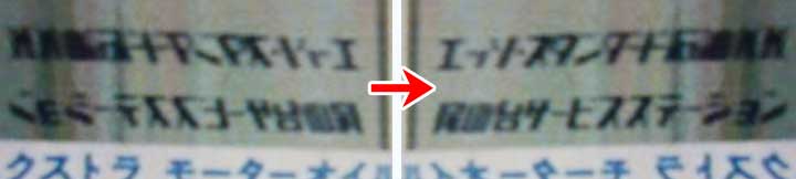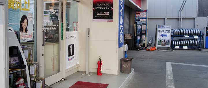 ![]() ![]() (撮影・2014・03・06) ![]() ![]() (撮影・2014・03・06) このガソリンスタンドは何処なのだろう。冒頭に登場した百合ケ丘駅付近なのだろうか。 スタンドの事務室のドアのガラスに文字が書いてある(赤円内)。ドアは開いているので裏側から読むことになる。「エッソ」のスタンドらしい。〇〇〇サービスステーション?何て書いてあるんだろう。画像を左右反転してちゃんとした方向にすれば読めるかもしれない。 やってみるもんですね、わかりました。 「エッソスタンダード石油K.K.」「尾山台サービスステーション」 こう書いてあったんですね。尾山台?あの世田谷の? 検索してみました。ありました。ちゃんと今でも営業していてくれました。おそらく間違いないでしょう。 洗車してもらいました。その間にパチリ。 ![]() より大きな地図で 駅前漫画のガソリンスタンド を表示 |