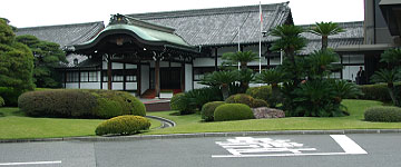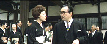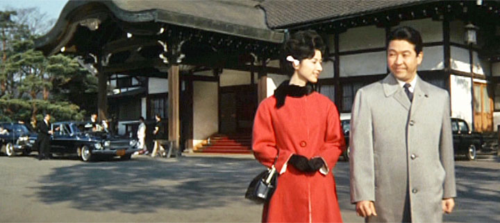 開始より1:25(東京都港区元赤坂・明治記念館) 太陽ペイントの社長秘書、木村(小林桂樹 )とタミエ(藤山陽子 )が結婚を決め、式場へ打ち合わせに行った帰りのシーン。 社長の堂本(森繁久彌)に仲人をお願いしようと考えていたのだが、社長の人格に疑問をもっているタミエは社長にはお願いしたくない、と言う。 ここは信濃町駅近くにある明治記念館だ。 |