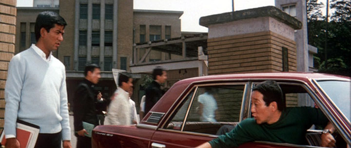 開始より0:25(東京都世田谷区桜上水・日本大学文理学部) 京南大学の校門で人を待つ田沼に、車に乗った石山(田中邦衛)が声をかけるシーン。 この京南大学ロケには日大文理学部が使われている。作品を見ると、大学構内はそのまま残っているとしたら美しい庭園風になっているはずだが、残念ながら入ることはできなかった。 |