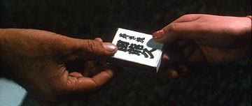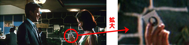 | マッチを受け取った澄子は一瞬そのマッチを裏返し、裏側のデザインを見ることができる瞬間がある。そこには田能久のマークになっている家紋「上り藤」が印されているのが見える。 |