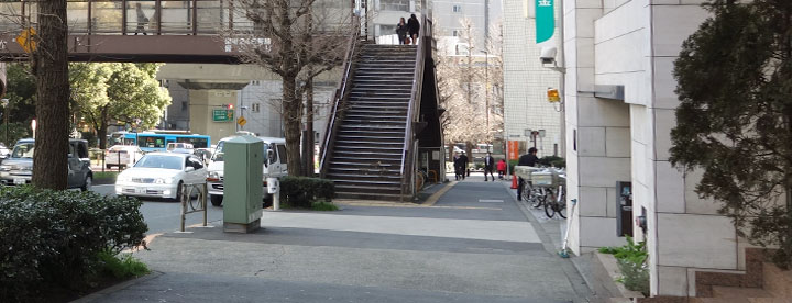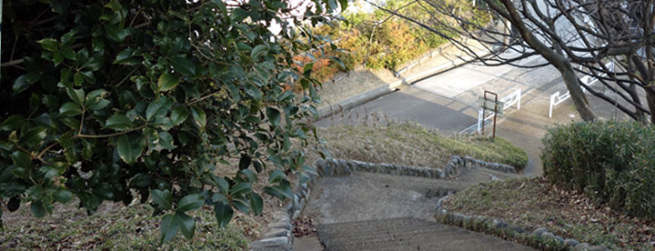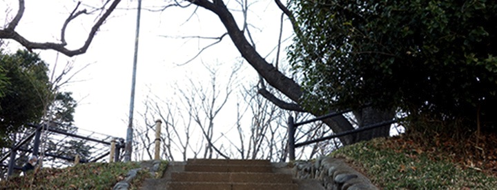 ![]() ![]() (撮影・2013・02・03) ↑ マダムたちに追い立てられ、あわてて公園から道路につながる階段を下りる谷とハナ。 |