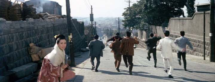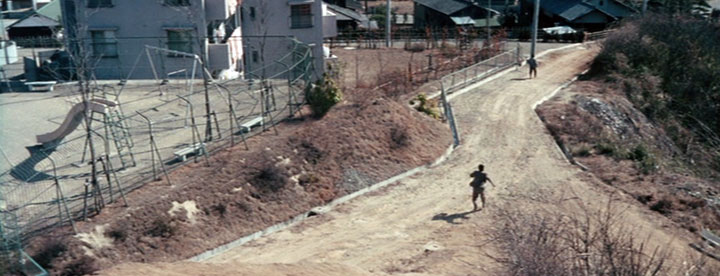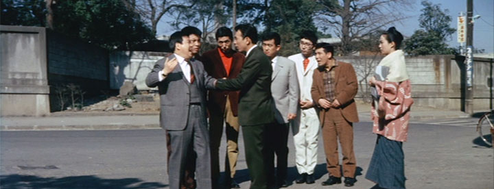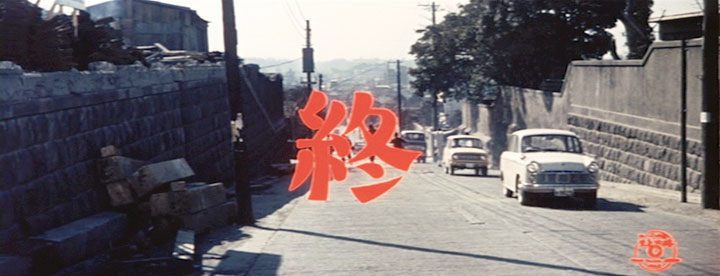 さて、上記の警察署前のラストシーンの中で最後のカット、ラスト中のラストは警察署を後にして上田ら七人プラスお勝の八人が踊りながら坂道を下って行くカットだ。そして「終」マークになる。
