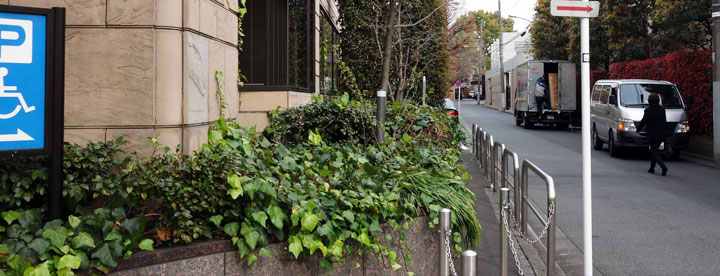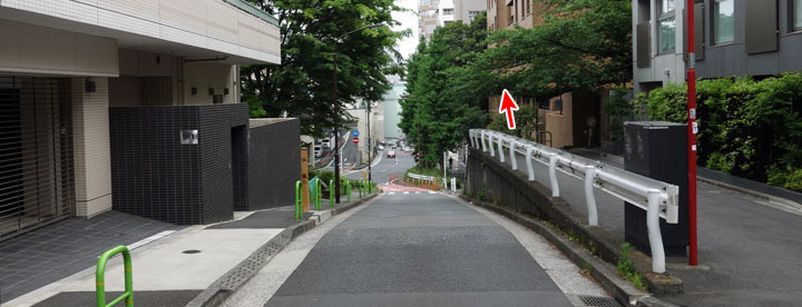 と挨拶して警察署の脇の方向に進んで行く。先程お勝が現れたのと同じ方向だ。ここでカットが切り替わり、八人が坂道を下って行くカットになる。ところが今八人が進んでいく道は、先程お勝が現れた道とは明らかに違う。どう違うかというと、全然違う。お勝が現れた「麻布会館」の看板が見える道は平坦で坂道ではなかったが、八人が行く道は長い下り坂で、道幅もずっと広い。坂の両脇は石垣になっていて、これも先程とは違う。 これはいったいどういうことなんだろう。 ![]() ![]() (撮影・2016・05・03) |