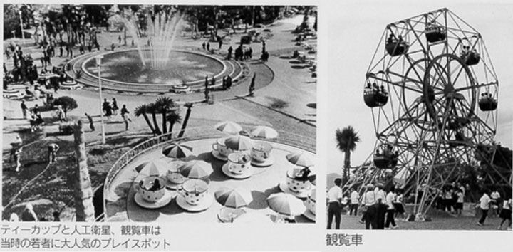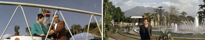 社長一行が宿泊した「城山観光ホテル」(現 城山ホテル鹿児島)。今回Hさんはここに宿泊されたのです。 ホテルのご厚意により「城山グループ創業50周年記念誌」という本を閲覧させていただいたそうです。 「50周年記念誌」と言うくらいですから、50年にも及ぶ資料が収められているのですが、ここではその中から「社長紳士録」が公開された年代に近い資料写真を見せていただくことにしましょう。 ![]() ↑ 写真左:「社長紳士録」からホテル正面玄関。 写真右:「50周年記念誌」からほぼ同じアングルの写真。映画公開年から2年後の写真です。右側の方に増築部分が写っています。しかし残念ながら現在はこの建物全体がもうありません。 ![]() ↑ 「城山観光ホテル」に隣接し、社長たちも訪れた、遊園地「城山遊楽園」(経営はホテルと同系)の招待券。 ![]() ↑ 「50周年記念誌」に載っている「城山遊楽園」。ティーカップ、観覧車、噴水などが写っています。 ![]() ↑ 「社長紳士録」に映し出されるそれらのものです。 ![]() ↑ 「城山遊楽園」内にある回転展望台です。1960年台前半くらいに世界中で「回転レストラン」というものが流行しました。東京では「ホテル・ニューオータニ」とか有楽町の「交通会館」などが有名ですね。「城山遊楽園」のものは展望台であり、レストランではありませんが、この流行を取り入れたものだと思います。 ![]() ↑ 「社長紳士録」公開2年後のホテル内のラウンジ。いい雰囲気ですねえ! あー、ここでカクテルとか飲んでみたかったなあ!