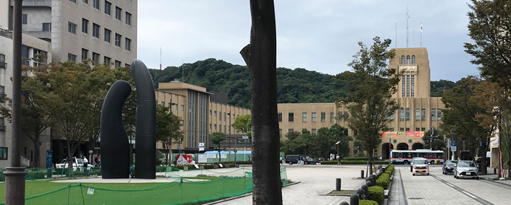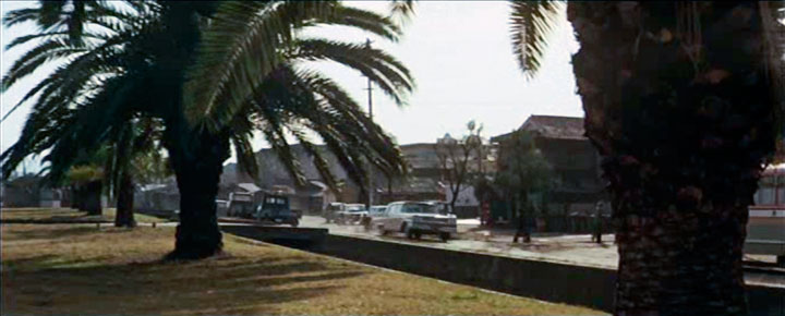 開始より0:59(鹿児島県鹿児島市山下町・鹿児島市役所付近) 現在、「蘇鉄の木」が植えてある部分が整備されて「みなと大通り公園」という公園になっています。 1964年公開当時の画像には「堀」のようなものがあります。 これが「名山堀」と言われていた大きな堀の一部(支流?)かと思います(現在は埋め立てられています) また、現在もこの近くに「名山堀」といわれる飲み屋街が残っています。 *参考 URL http://region-kagoshima.net/staff-571 http://region-kagoshima.net/staff-575 http://region-kagoshima.net/staff-579 http://region-kagoshima.net/staff-583 http://region-kagoshima.net/staff-585 ![]() ![]() (撮影・原田教隆さん・2019・10・18) ↑ 撮影中に散歩中のお爺さんがいたので、スクショしたプリントを見せて「この写真はここですよね? (場所は確定しているのに一応確認のためにw)」と、わざとらしく質問をしたら「ここに私の昔の家が写っているので 間違いないです。芝生の公園より蘇鉄の木が植わっていた時代が良かった」と言っていました。 ![]() ![]() (撮影・原田教隆さん・2019・10・18) ↑ 次にカメラがパンしてこのアングルになります。 ※1964年公開の画像に写っているバスは「鹿児島市営バス」だそうです。 当時の市営バスは「市役所前からの発着」が基本だったみたいで、画像に写っているバスは「バス停」に停まっているバスみたいです (私の母の情報w) |