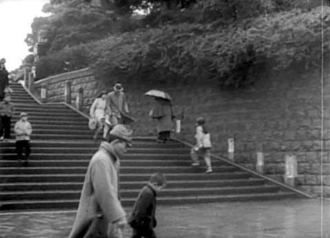 開始より0:46(東京都台東区上野公園〜上野・上野恩賜公園〜JR上野駅) 結婚をしたいのだが、なかなか状況が許さない雄造(沼崎勲)と昌子(中北千枝子)はある日曜日、待ち合わせてデートをする。手持ちの金は二人合わせてもわずか35円。ふと思いついて上野の動物園に行く。そこで雨に降られて上野駅まで走る二人。 沼崎勲はロケで演技をするのが苦手なので、この後の場面に出て来る日比谷公会堂や日比谷野外音楽堂などもセットで撮影されたという話を聞いたことがある。しかしこの上野のシーンはさすがにセットというわけにはいかなかったようだ。 |