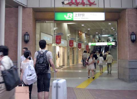 (撮影・2011・08・21) その後、石垣に沿って土産物店、飲食店(上野じゅらく)などが立ち並ぶようになるが、現在はそれも無くなり、工事中であった。「じゅらく」は上野らしい大衆的な店でよかったのだが。 現在の上野駅はJR系のショッピングモール「アトレ (atre) 」が展開され、一階には「Hard Rock Cafe」なども出店し、待ち合わせ場所として親しまれている。 雄造と昌子には想像もつかない未来になってしまった。 |