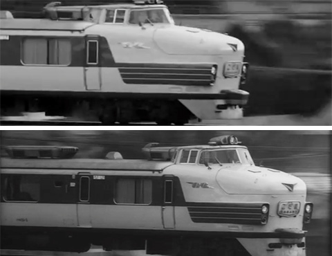 ↓ ㉕ 走るこだま号のカット。これも予告編、本編で同じ一瞬はありませんでした。マルチカメラの別カメラか、複数回テイクを重ねたのか、どちらかだと思われます。
